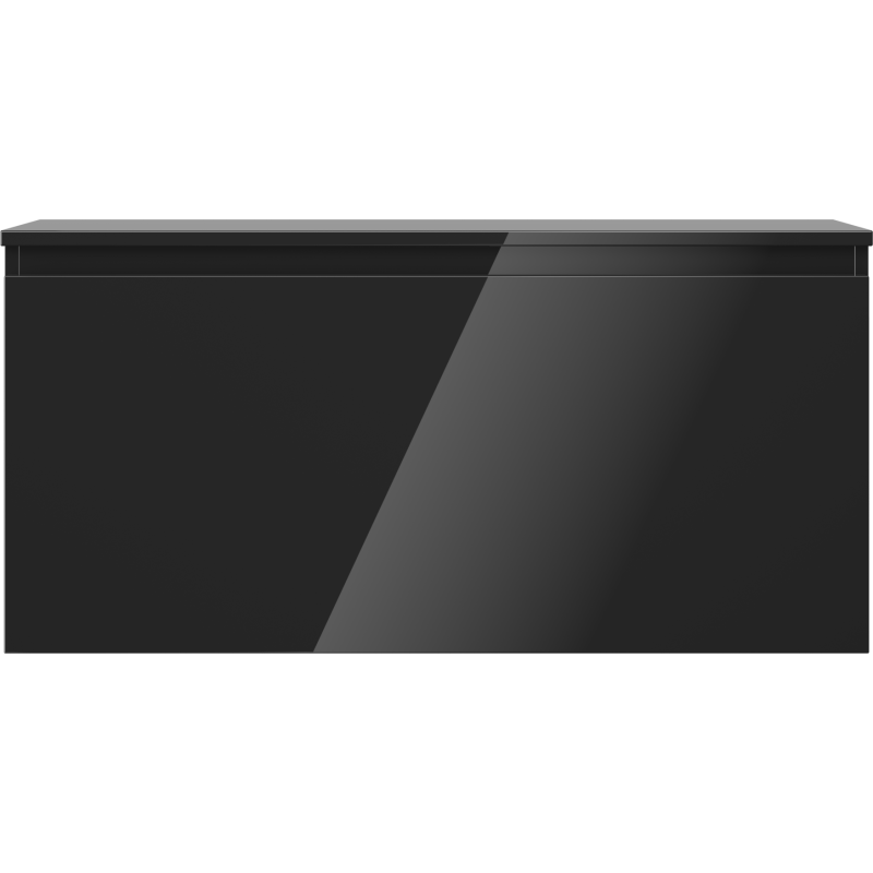 Servantskapet har en bredde på 100 cm, høyde på 47 cm og dybde på 46 cm, noe som gir god oppbevaringsplass uten å virke dominerende på badet. Korpus er laget av lakkert plate, mens fronten består av lakkert MDF-plate i svart høyglans med glatt front, noe som gir et elegant og tidløst uttrykk. Dette servantskapet til bad passer spesielt godt i moderne baderomsløsninger der rene linjer og blanke overflater er i fokus.