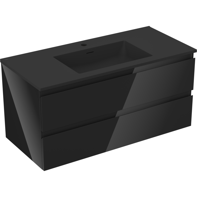 - Modell: Orio 100 cm med Otis-servant, 2 skuffer, svart høyglans/svart matt