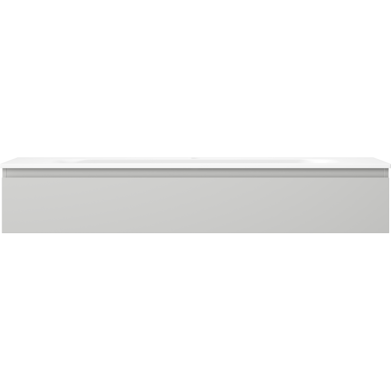 Denne løsningen kombinerer en romslig Vela servant med skap i ett praktisk servantskap 140 cm, der kvalitet og funksjonalitet står i fokus. Skroget i lakkert plate og front i lakkert MDF gir en stabil og slitesterk konstruksjon, mens den grå matte overflaten gir et moderne uttrykk som harmonerer med mange baderomsstiler.