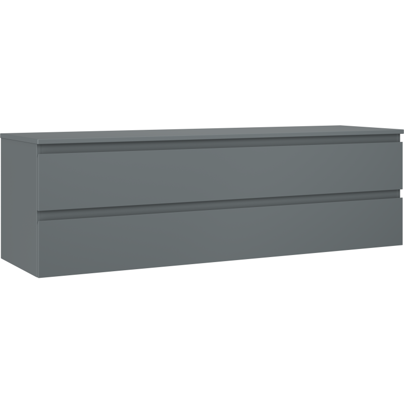 Skapet leveres med en tilpasset toppplate i samme farge som korpus og fronter, slik at du får et komplett skuffeskap til bad klart for montering av en eller flere toppmonterte servanter etter eget valg. Med en bredde på 160 cm gir dette servantskapet til bad rikelig plass både på benkeplaten og i de to store skuffene.