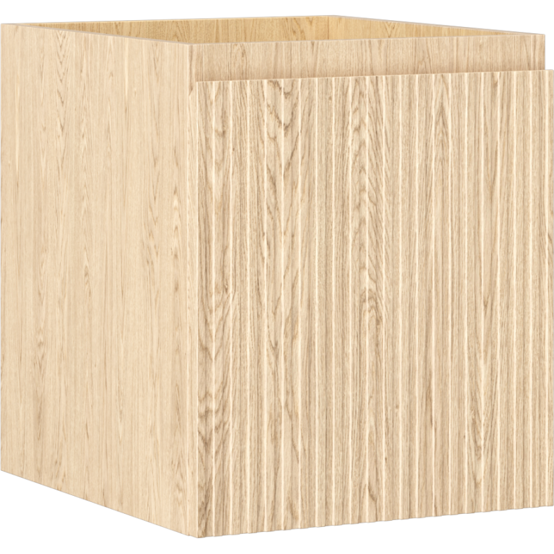 Dette underskapet til servant fra Mexen Rivel-serien kombinerer funksjonalitet og design i ett baderomsmøbel i eik. Den riflete fronten i eik gir et moderne og eksklusivt preg, samtidig som den skaper en spennende struktur i baderomsinnredningen. Servantskap til bad i denne utførelsen gir et helhetlig og gjennomført uttrykk når det kombineres med tilpasset benkeplate eller servant.