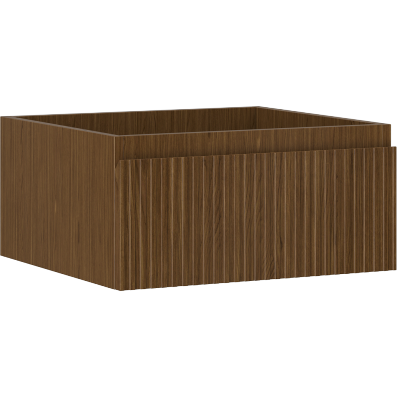 Mexen Rivel 50 cm er et moderne servantskap til bad, utviklet for deg som ønsker en stilren og funksjonell løsning i baderommet. Dette servantskapet uten vask er et kompakt baderomsskap som er veggmontert, ideelt for mindre og mellomstore bad der hver centimeter utnyttes effektivt. Fronten har en elegant riflet struktur i fargen valnøtt som gir en varm og eksklusiv følelse, samtidig som det skaper en moderne riflet baderomsinnredning.