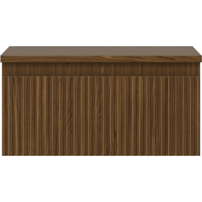 Servantskapet har et korpus i valnøtt og en front i samme valnøttfarge, noe som gir en varm og eksklusiv trefølelse. Fronten har riflet struktur som skaper en elegant og moderne riflet baderomsinnredning. Toppplaten er dimensjonert for å flukte pent med skapet og er også utført i valnøtt. Dette gjør Mexen Rivel til et helhetlig servantskap til bad som kombinerer design og funksjon.