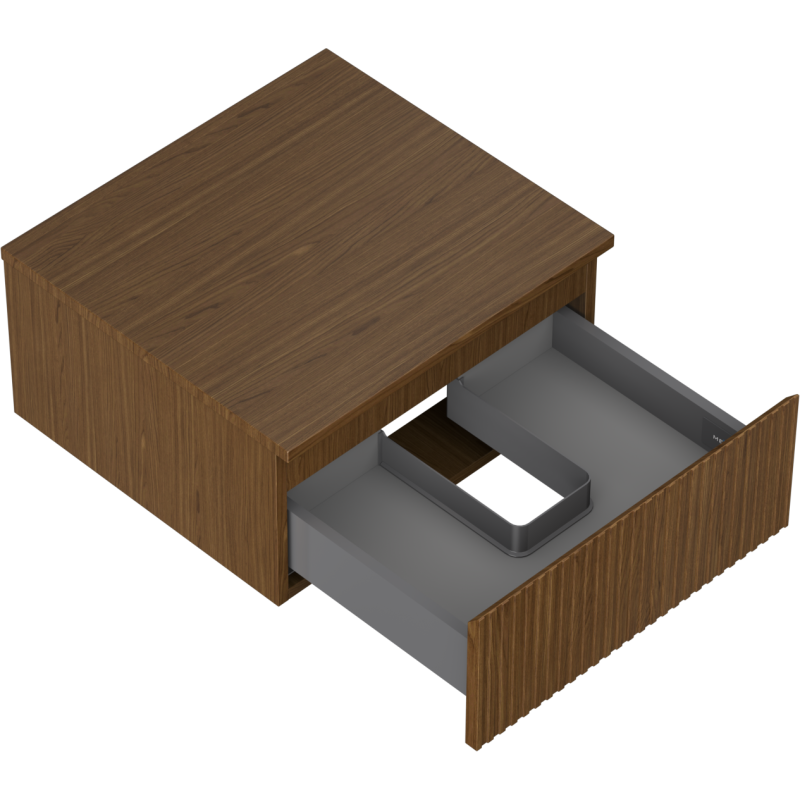 Som servantskap uten vask gir Mexen Rivel stor fleksibilitet ved planlegging av badet. Du kan selv velge ønsket toppmontert servant og armatur, og dermed tilpasse uttrykk og funksjon til resten av baderomsinnredningen. Servantskap til bad i denne utførelsen er ideelt for deg som vil kombinere et baderomsmøbel i valnøtt med en servant i ønsket form og materiale.