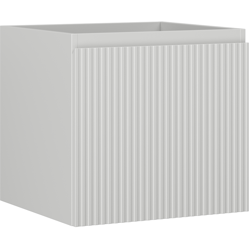 Mexen Rivel 50 cm er et moderne og funksjonelt servantskap til bad, designet for montering under en servant eller som underskap til en benkeplate. Dette servantskapet uten vask har et stilrent uttrykk med riflet front og en elegant grå matt overflate som passer godt inn i både små og store baderom.