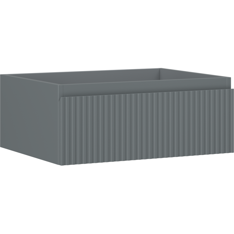 Den romslige skuffen gjør det enkelt å holde orden på toalettsaker, kosmetikk og andre nødvendigheter, slik at benkeplaten kan holdes ryddig og lett å rengjøre. Myklukkingsmekanismen sørger for stille og behagelig bruk i hverdagen, mens den UV-resistente overflaten bidrar til langvarig estetikk og holdbarhet. Den matte grafittfargen og den riflede fronten gir et tidløst, moderne uttrykk som passer inn i mange ulike baderomsstiler.