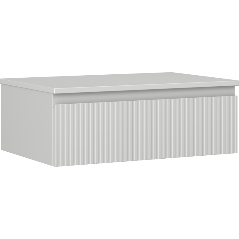 Som servantskap uten vask gir Mexen Rivel stor fleksibilitet ved at du fritt kan velge den toppmonterte servanten som passer best til ditt baderom. Den medfølgende toppplaten i grå matt utførelse er ideell som base for toppmonterte servanter og gir et helhetlig uttrykk sammen med det riflede frontpanelet. Dette gjør det enkelt å skape et personlig servantskap til bad som matcher resten av interiøret.