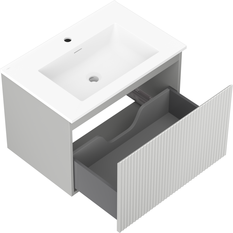 - Mexen Rivel hengende servantskap 70 cm med riflet grå matt front og grå matt korpus (ferdig montert skap)