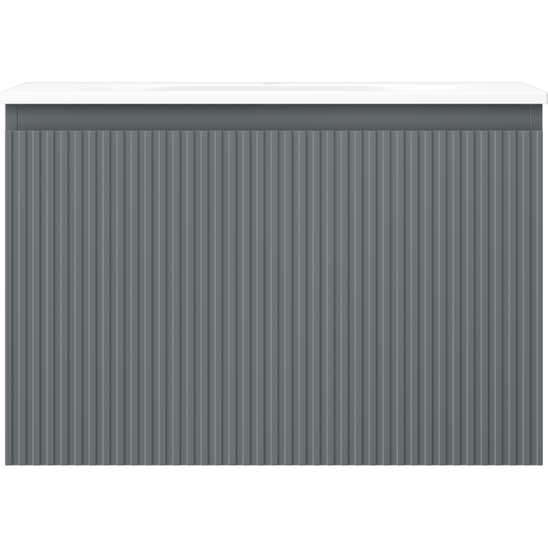 Fronten i lakkert MDF og korpuset i lakkert plate har en overflate som er motstandsdyktig mot UV-stråler, noe som bidrar til at fargen grafitt matt bevares pen over tid uten å falme. Den riflete frontstrukturen gir servantskap med skuff et tydelig designuttrykk, samtidig som den matte finishen reduserer synlighet av fingermerker.