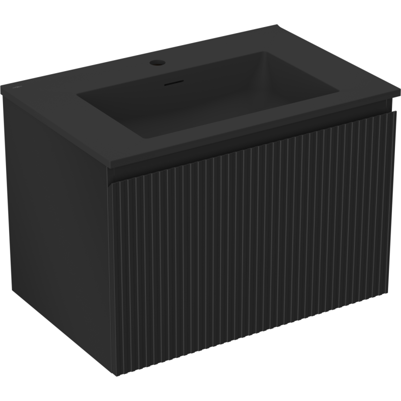 Mexen Rivel er et moderne servantskap med vask i bredden 70 cm, utviklet for stilrene og funksjonelle baderomsløsninger. Dette baderomsskapet med servant leveres komplett med Otis-servant i svart matt utførelse, noe som gir et helhetlig og elegant uttrykk på badet. Den riflete baderomsfronten kombinert med matt overflate gir et eksklusivt og tidløst preg.