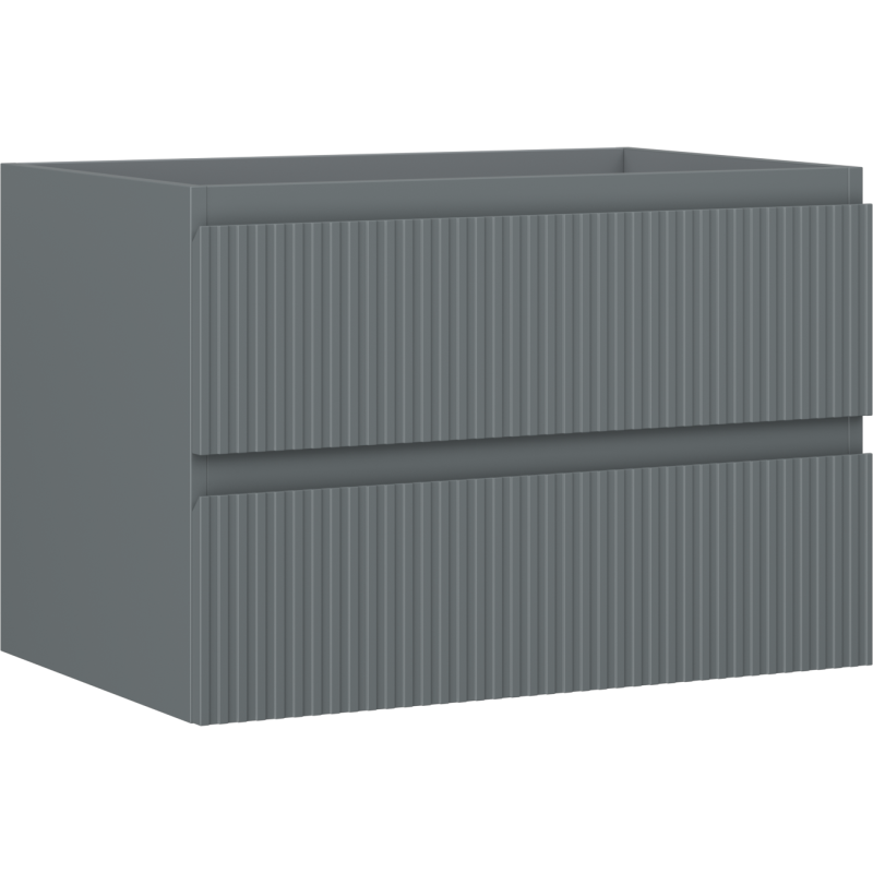 Mexen Rivel 70 cm er et moderne og funksjonelt servantskap til bad, designet for montering under servant eller i kombinasjon med en separat benkeplate. Dette veggmonterte servantskapet uten vask passer perfekt i både små og mellomstore bad, og gir et stilrent uttrykk med sin riflete front og elegante overflate i grafitt matt. De kompakte målene gjør det enkelt å integrere i ulike baderomsløsninger, samtidig som det gir god oppbevaringsplass.