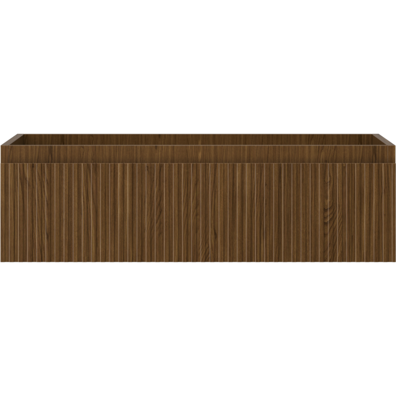 Servantskapet har en bredde på 80 cm, høyde på 23,5 cm og dybde på 46 cm, noe som gir god oppbevaringsplass samtidig som det utnytter plassen under servanten optimalt. Korpus er utført i plate belagt med PVC-folie i valnøtt, mens fronten er laget av MDF-plate med PVC-folie i samme valnøttfarge. Den riflete fronten gir et eksklusivt og moderne preg som passer perfekt i et tidsriktig servantskap til bad.