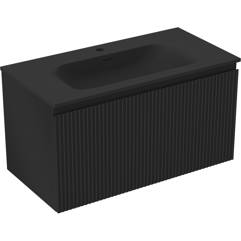 - Modell: Mexen Rivel 90 cm med Vela-servant, 1 skuff, riflet front, svart matt