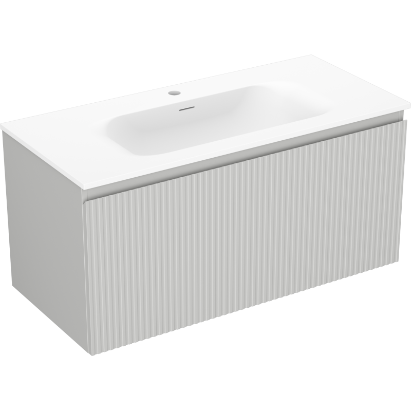 - Modell: Mexen Rivel 100 cm med servant Vela, 1 skuff, riflet front, grå matt/hvit matt