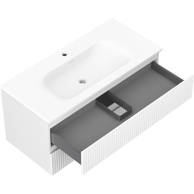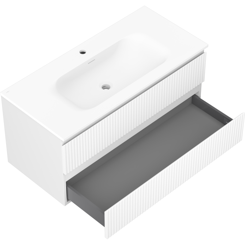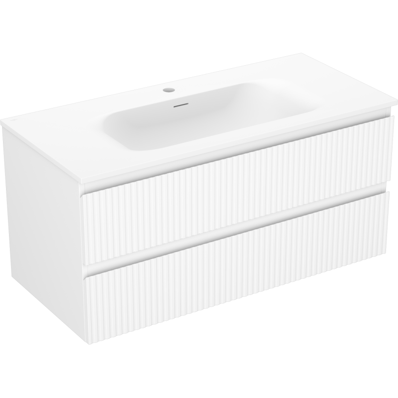 - Modell: Rivel 100 cm med Vela servant, 2 skuffer, riflet front, hvit matt