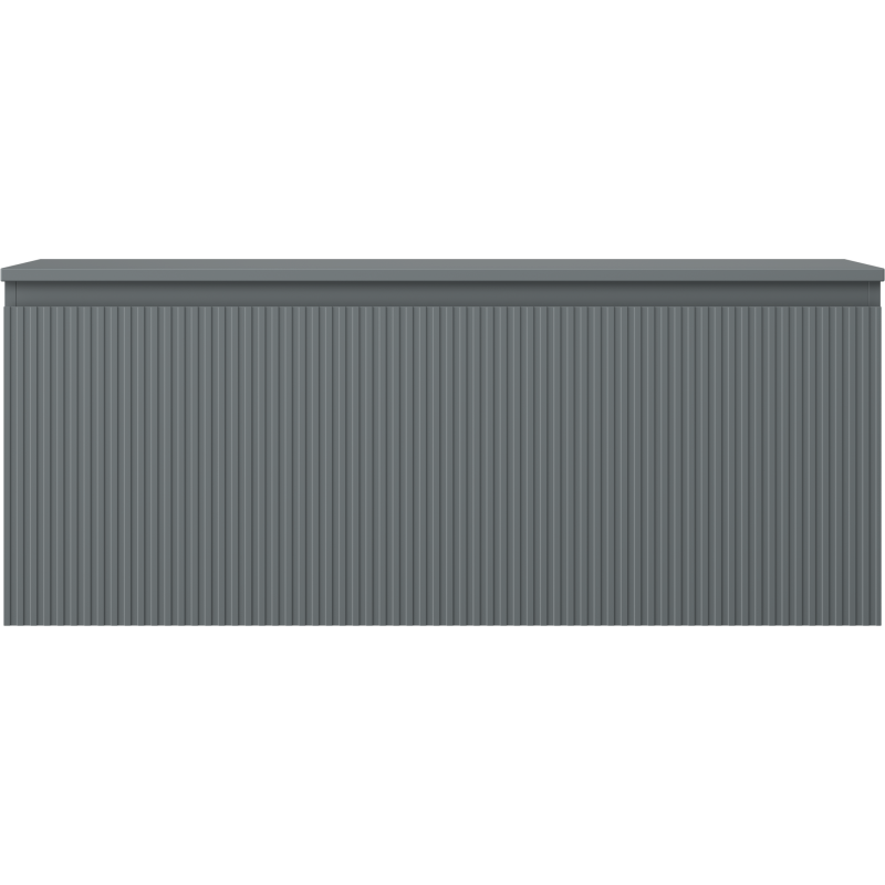 Dette underskapet til servant er produsert i lakkert møbelplate og MDF, noe som sikrer god formstabilitet og en jevn, slitesterk overflate. Fronten er laget av lakkert MDF med riflet struktur som gir en eksklusiv og taktil finish, mens korpuset er i lakkert plate i samme grafitt matt-farge for et helhetlig uttrykk. Som veggmontert servantskap 120 cm frigjør det gulvplass og gjør renhold enklere.
