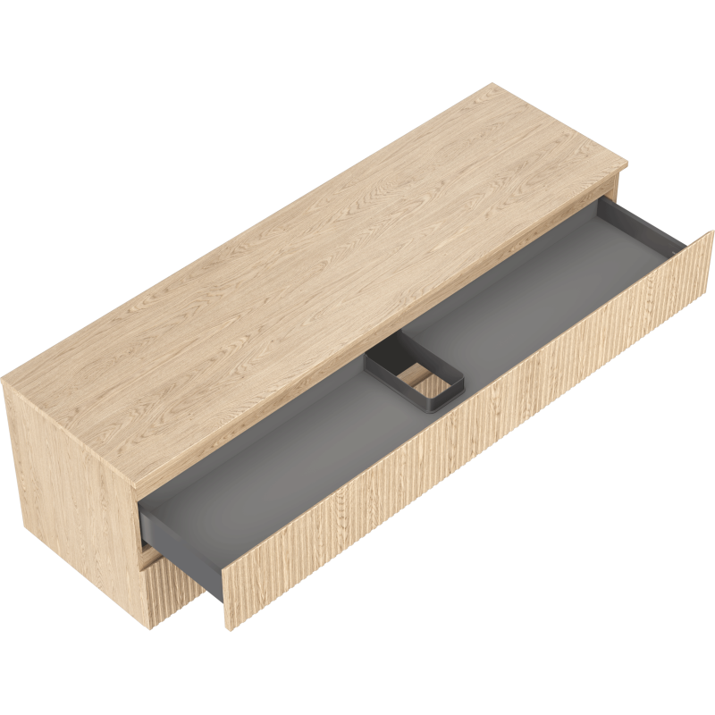 - Serie/modellbetegnelse: Mexen Rivel, baderomsskap 160 cm med benkeplate, 2 skuffer, riflet front, eik