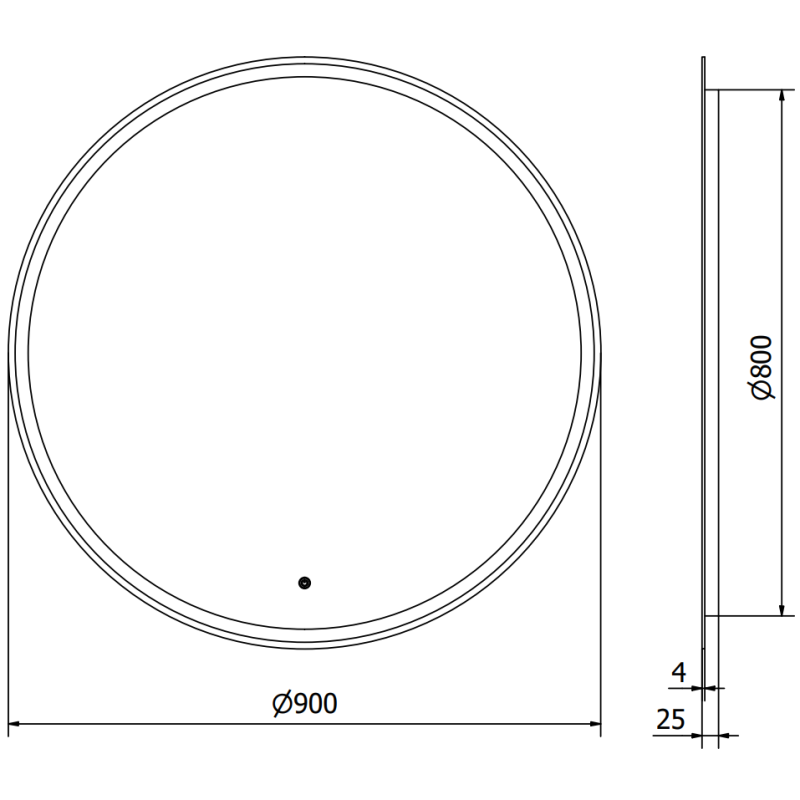 Speilet har en diameter på 90 cm og er bygget i 4 mm tykt glass med en total dybde på 25 mm. Det runde LED-speilet passer like godt i små som store bad, og den minimalistiske formen gjør det enkelt å integrere i både moderne og klassiske baderomsløsninger.
