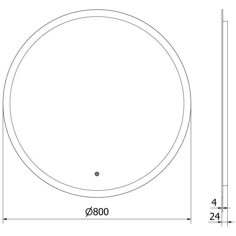 Speilet har en diameter på 80 cm og en total dybde på 24 mm, med 4 mm tykt glass av høy kvalitet. Den runde formen gjør dette runde LED-speilet til et elegant blikkfang på badet, samtidig som det er lett å plassere over servant eller baderomsmøbel.