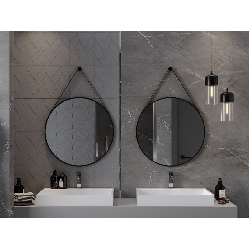 - 1 x Mexen String rundt baderomsspeil, Ø 70 cm, svart aluminiumsramme