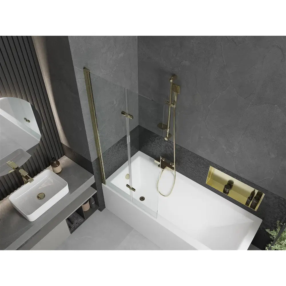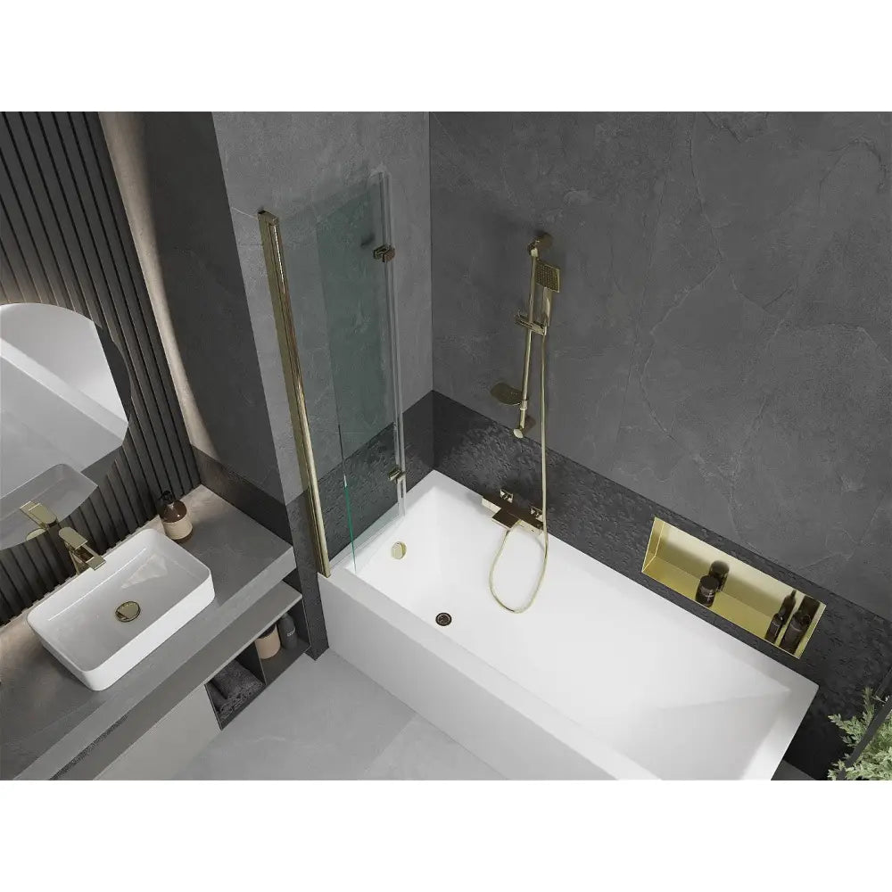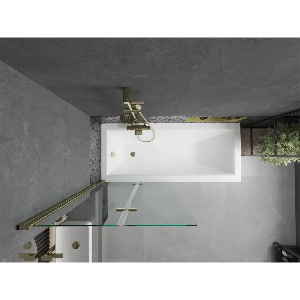 Badekar Med Dusj Cubik 160x70 cm med 2-delt dusjvegg 80 cm, gjennomsiktig, gull - 550316070X