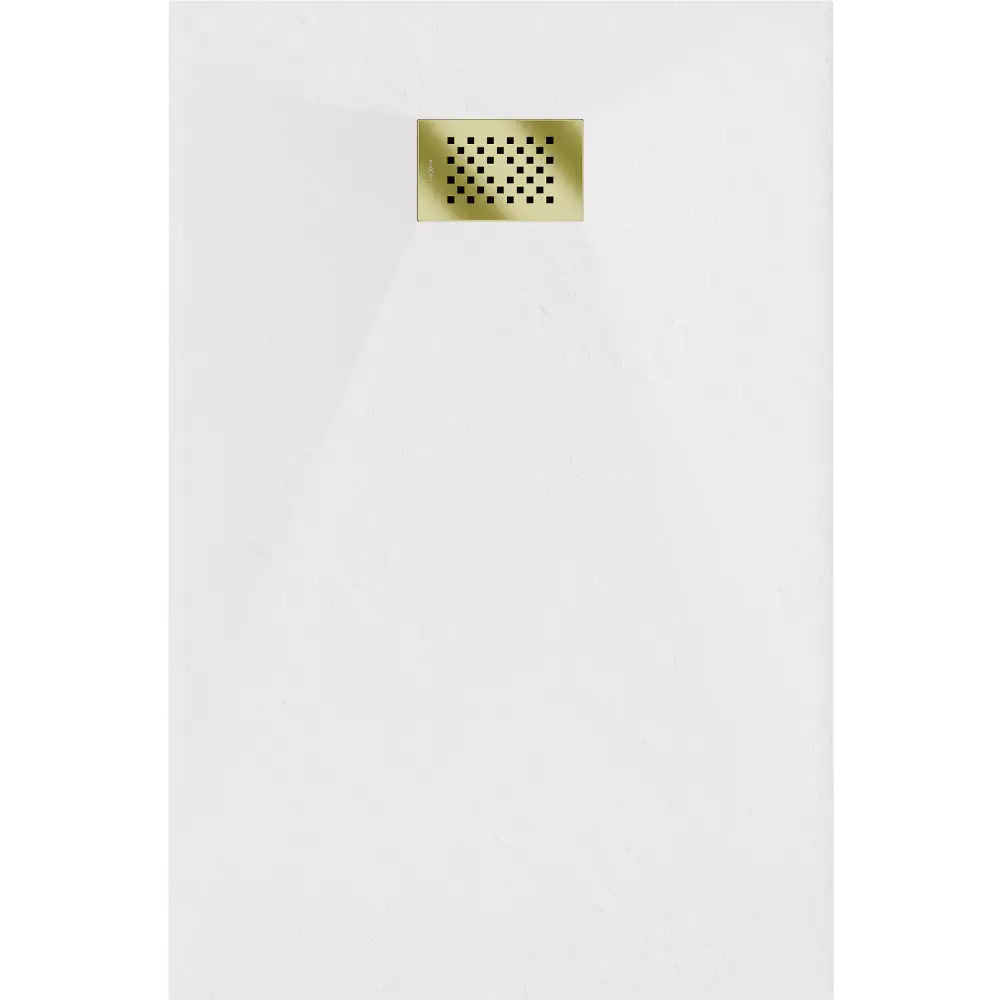 Med mulighet for tilpasning etter dine behov, kombinert med en strukturert overflate og et elegant, gullfarget avløpsdeksel, tilfører Hugo dusjbunn både funksjonalitet og en følelse av luksus.