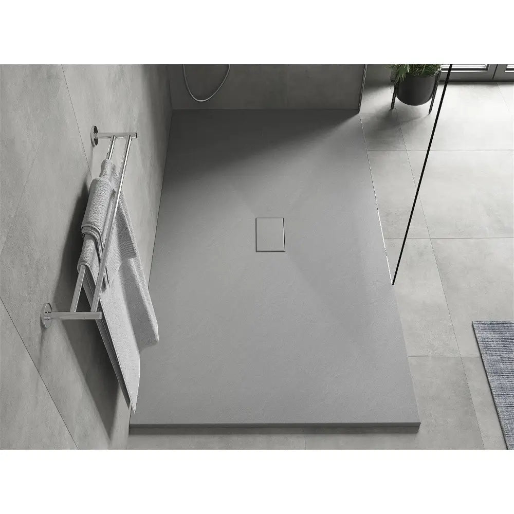 Denne dusjbunnen kombinerer estetikk med praktisk funksjonalitet. Det slanke, rektangulære designet og den grå fargen passer perfekt i alle baderomsstiler.