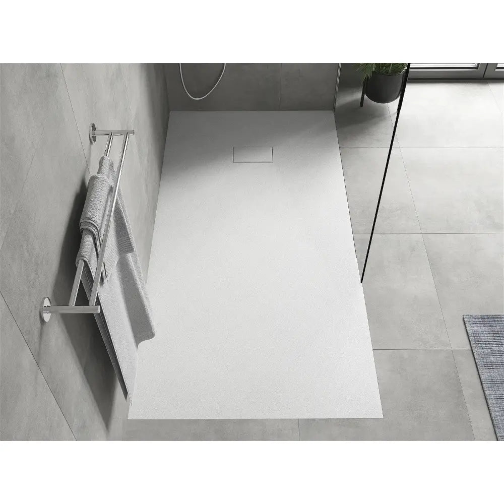 Med sine imponerende dimensjoner på 180x80x2,6 cm, tilbyr Hugo dusjbase rikelig med dusjrom, maksimal komfort og frihet under dusjen. Den nyskapende strukturen imiterer stein, noe som ikke bare gir ekstra sklisikkerhet, men også tilfører et naturlig element til badets estetikk.