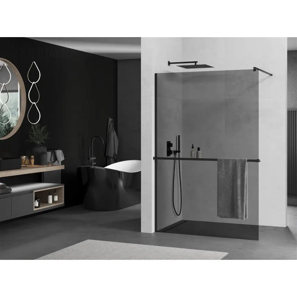 Dusjvegg med hylle 110x200 cm, grafitt, svart