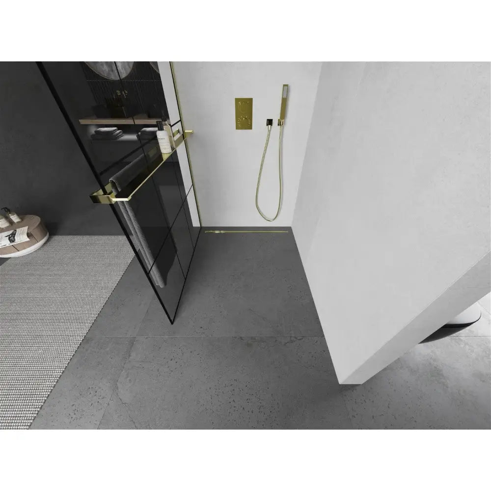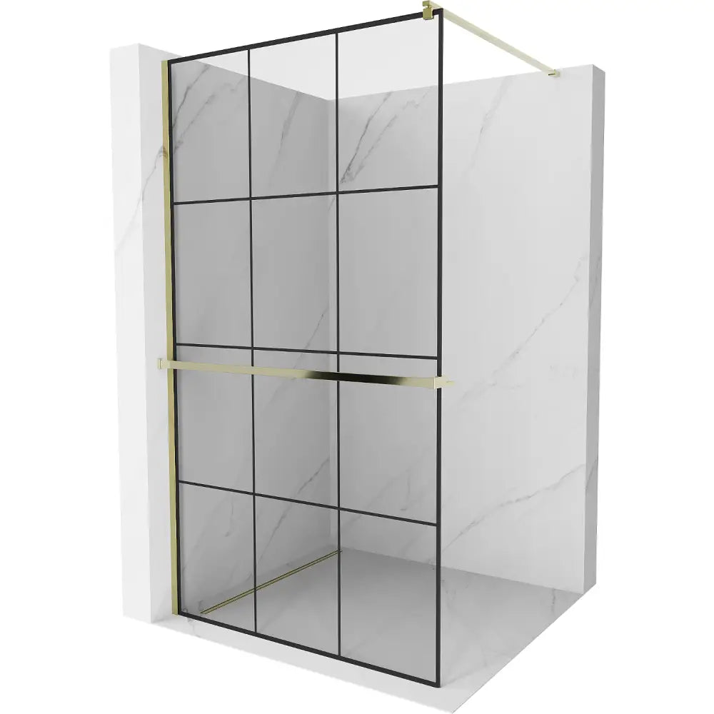Denne dusjdøren kommer med et elegant sort mønster på herdet glass, omgitt av en glinsende gullprofil. Den universelle montasjen og den beskyttende belegningen forenkler rengjøringen og vedlikeholdet, og tilfører badet en følelse av luksus.