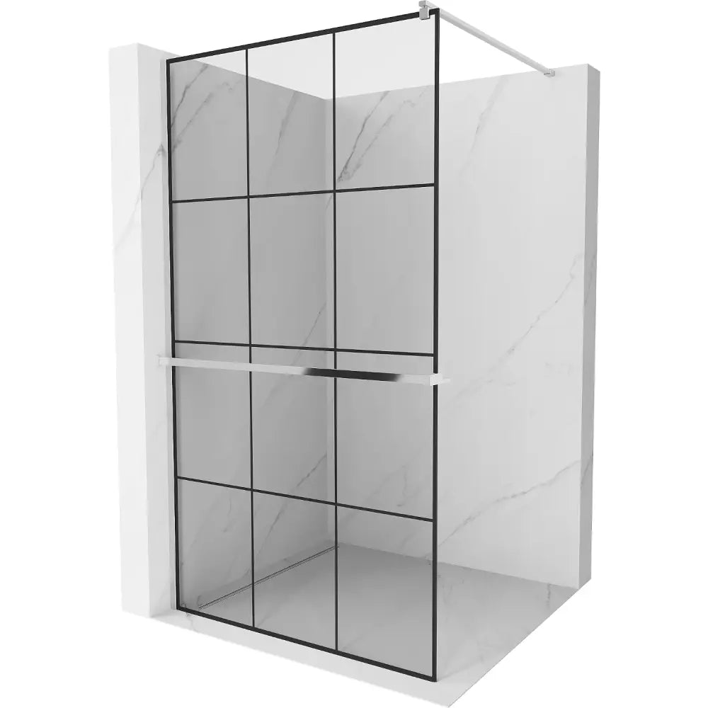 Eksklusiv Mexen Kioto+ dusjvegg i svart mønster og Krom for et moderne bad. 200x110cm, 8mm herdet glass, enkel rengjøring.