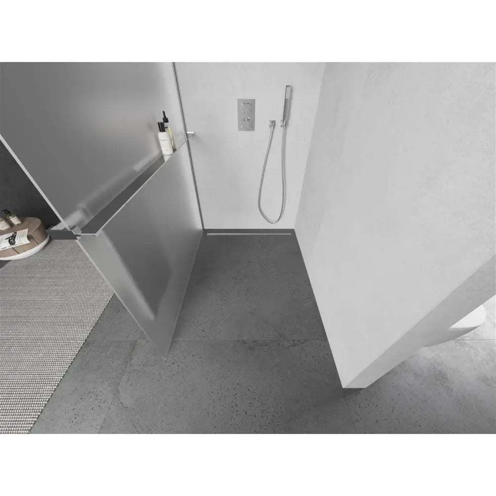 Oppgrader baderommet med Mexen Kioto+ dusjvegg i elegant frostet glass og kromfinish. Enhver dusj blir en luksuriøs opplevelse.