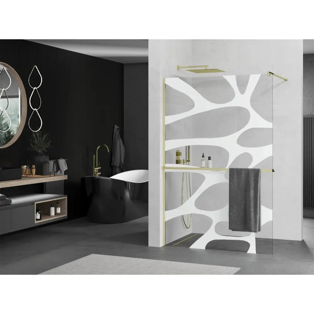 Med sitt hvite glassmønster og elegant gullfinish, tilbyr disse dusjdørene en perfekt balanse mellom stil og funksjonalitet. Det høykvalitets, 8 mm tykke, herdede glasset sikrer både sikkerhet og holdbarhet.