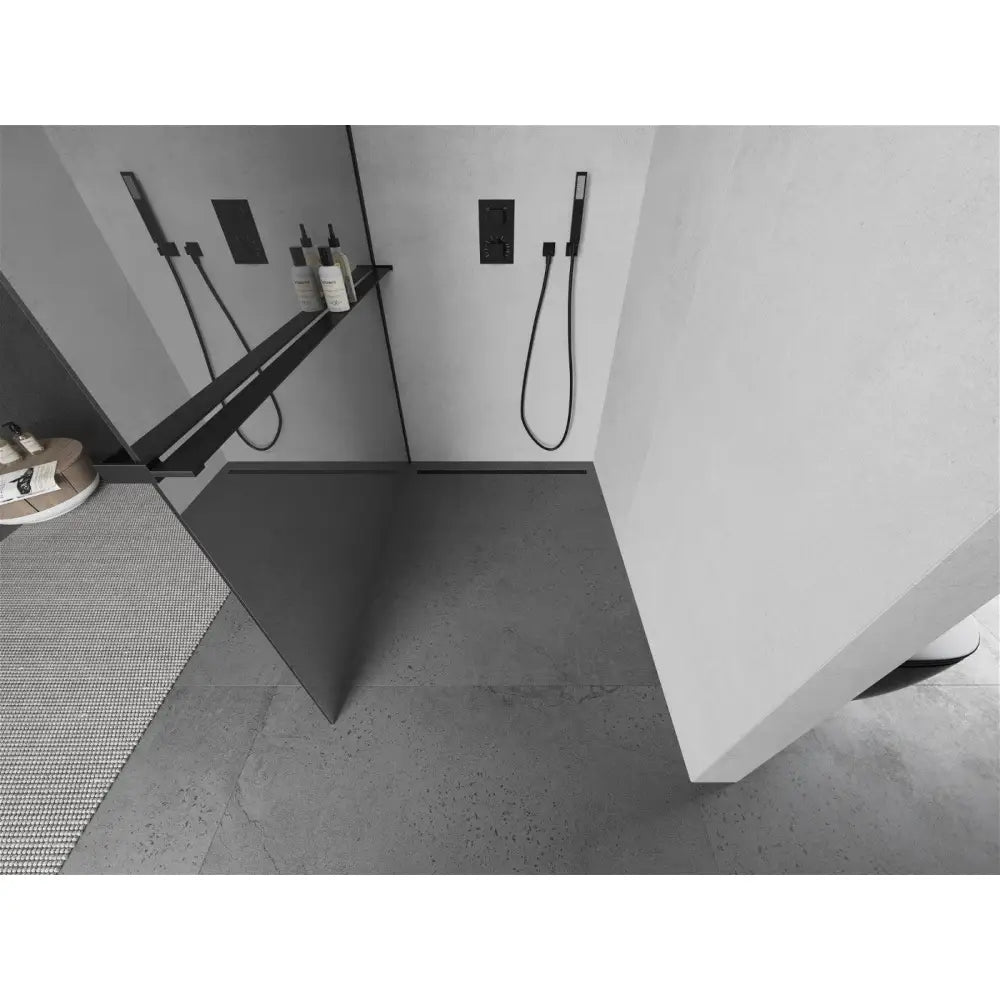 Denne dusjdøren kombinerer stil og funksjonalitet med sitt speilglass og aluminiumsprofil av høy kvalitet. Den sorte fargen tilfører et moderne og sofistikert preg.