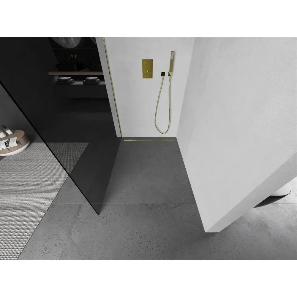 Denne dusjdøren kommer i en rik grafitfarge med en luksuriøs gullfinish på profilen, noe som tilfører et preg av eleganse til ethvert bad. Med 8 mm tykt, hartet sikkerhetsglass garanterer Mexen eksepsjonell kvalitet og holdbarhet.