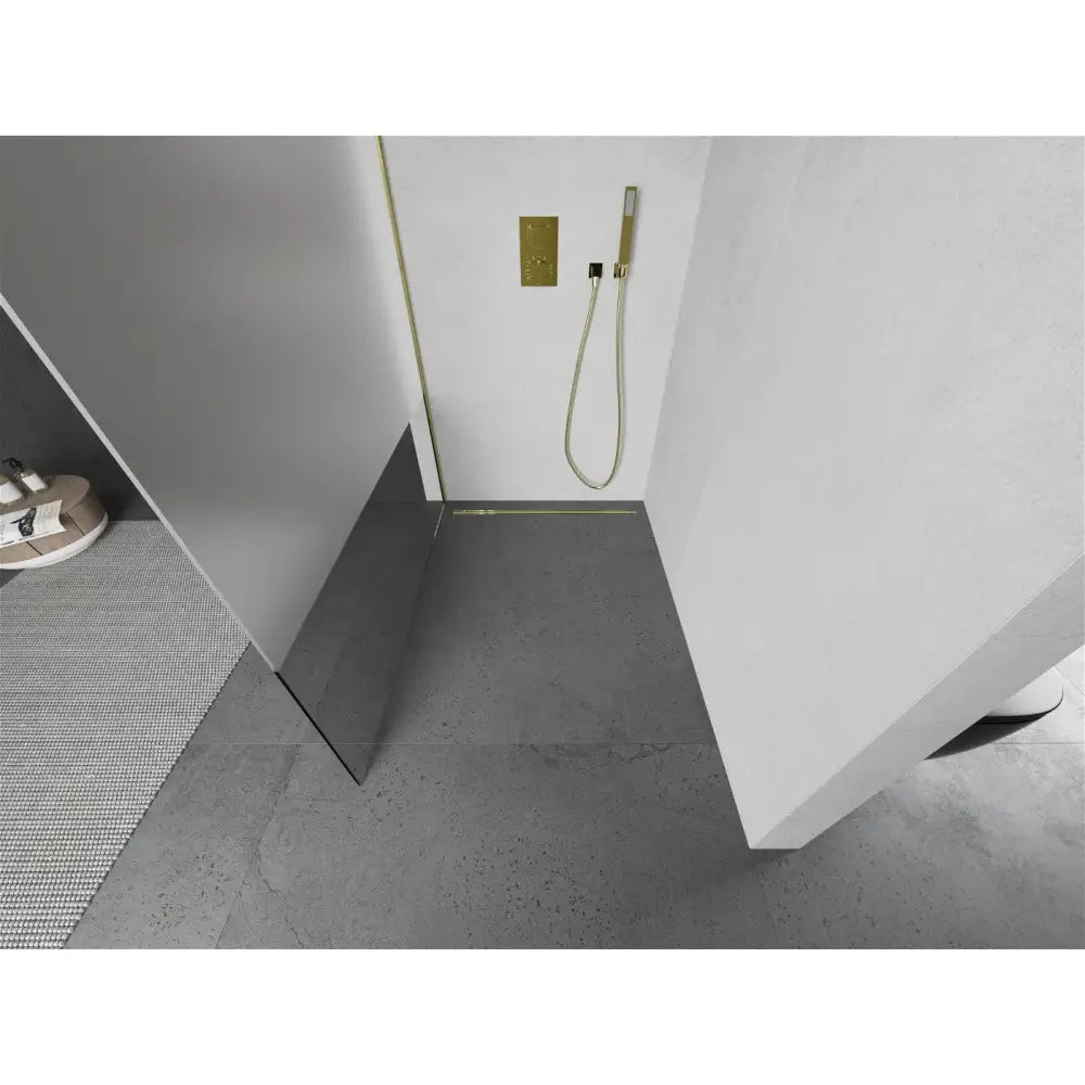 Beskyttende belegg på glasset gjør rengjøringen til en lek, mens den rustfrie stålkonstruksjonen sikrer at dusjdøren din ser ny ut år etter år. Profilens gullfinish legger til et snev av klasse, uten vedlikeholdsbehov.