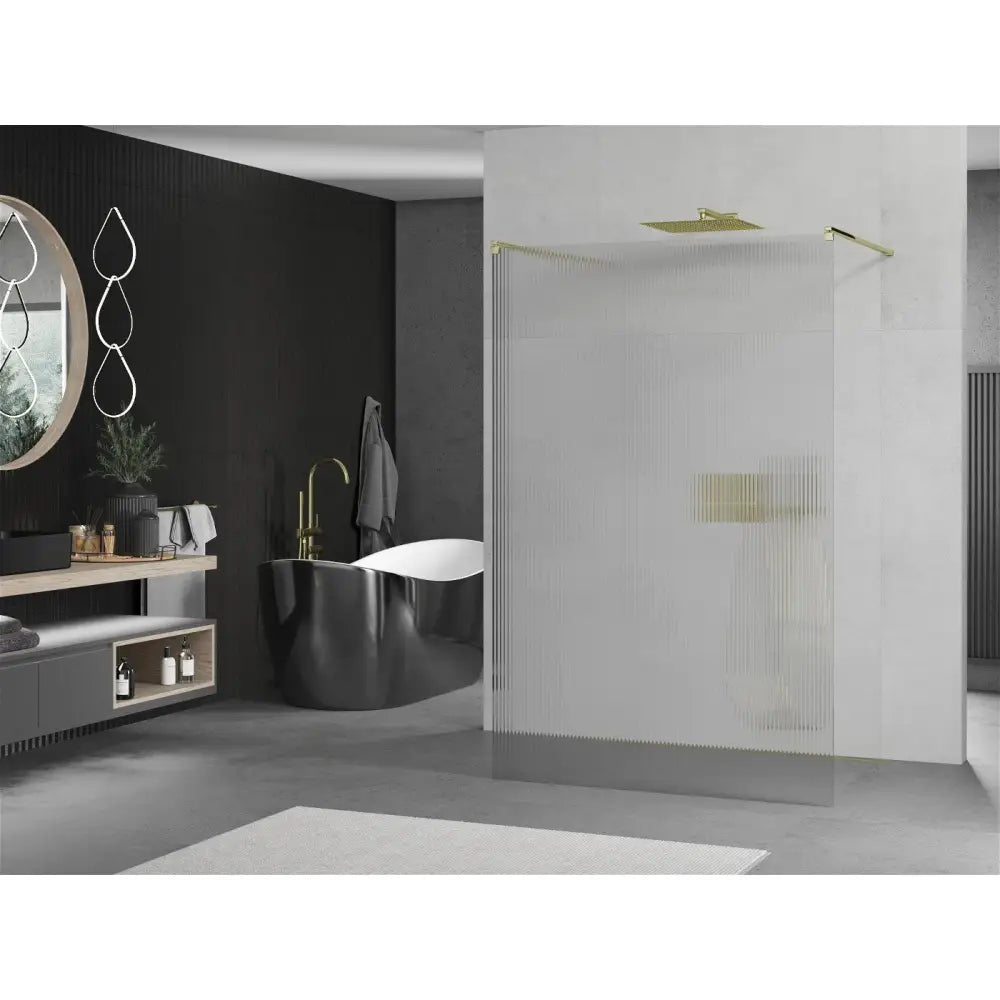 Med sitt elegante præget glass og en raffinert gullfinish, tilbyr Mexen Kioto dusjveggen en estetisk appell som oppgraderer ethvert baderomsutseende. Den universelle monteringen sikrer at den kan passe i alle baderomskonfigurasjoner.