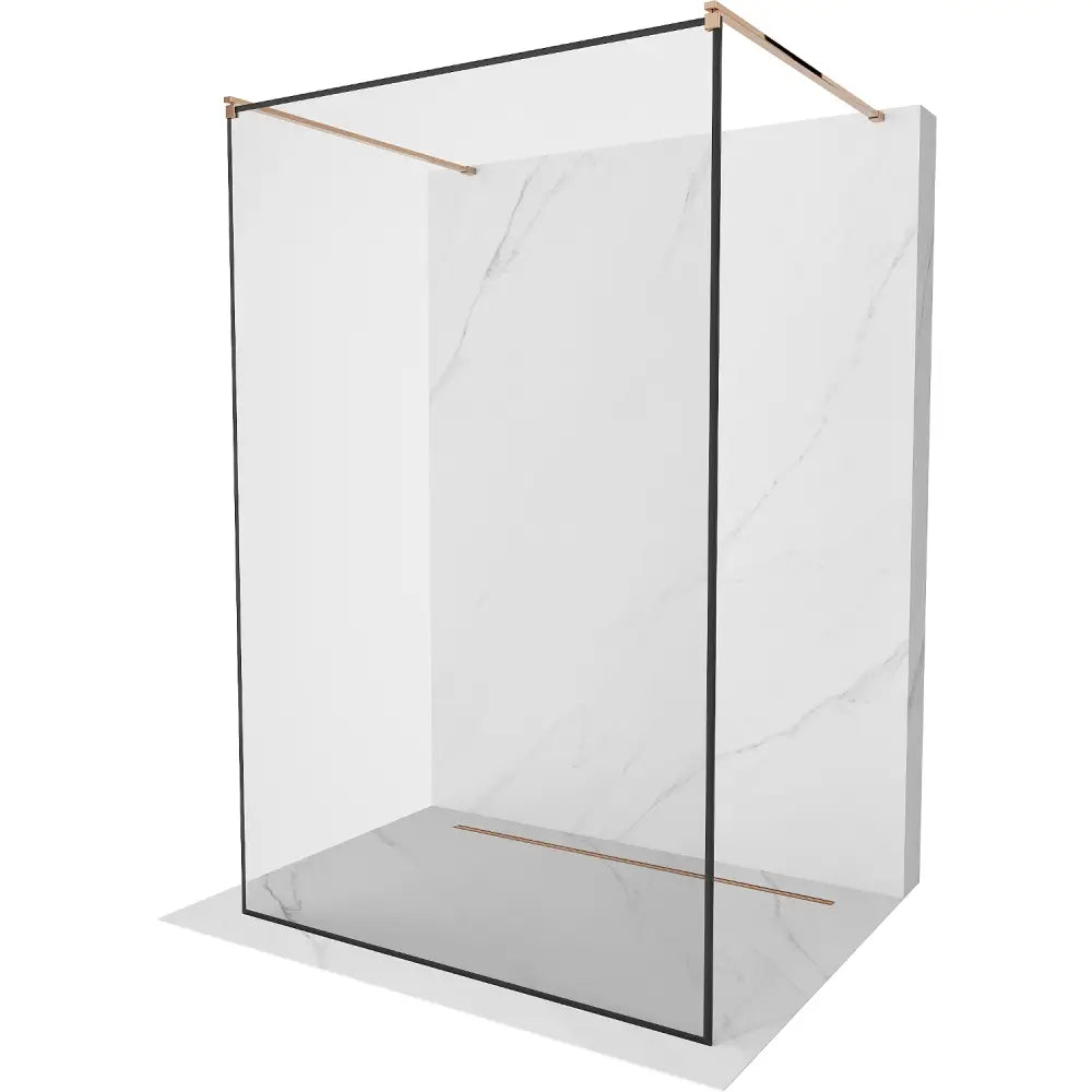 Med en bredde på 160 cm og en høyde på 200 cm tilbyr denne dusjveggen fra Mexen ikke bare privatliv, men også en følelse av romslighet med sitt transparente, svarte mønstrede glass og profiler i rosa gullfinish.