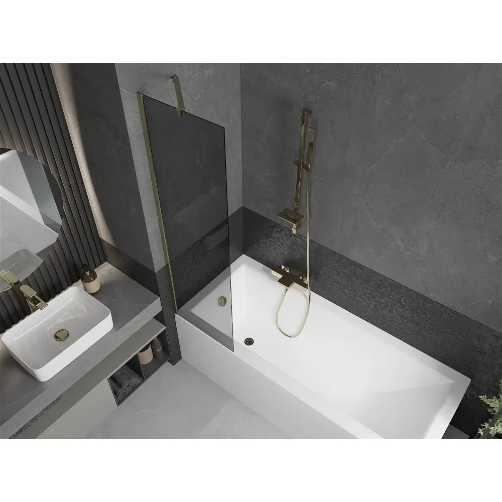 Døren er laget av 6 mm tykt, hartet grafitfarget glass med en elegant gullfinish som sikrer både stil og sikkerhet. Den har også en praktisk beskyttelsesbelegg som forenkler rengjøring.