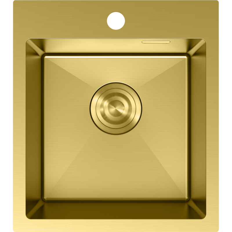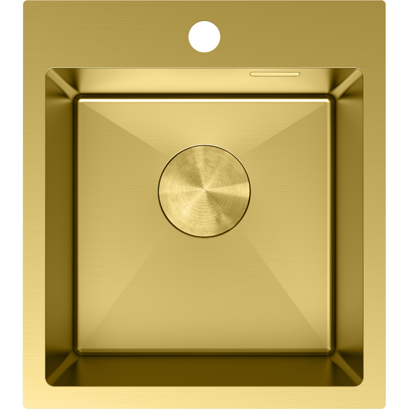 Vasken er en kompakt kjøkkenvask med 1 kum, med utvendige mål 400 x 450 mm og en romslig, dyp kum på 200 mm. Den gylne fargen, den glatte overflaten og de stramme linjene gjør denne kjøkkenvasken i gull til et naturlig blikkfang, samtidig som den er enkel å kombinere med moderne armaturer og benkeplater.