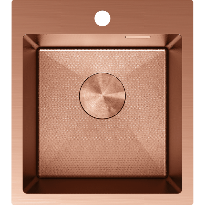 Vasken er produsert i høykvalitets rustfritt stål AISI 304 og har en eksklusiv kobberfarge med dekorativ overflate i «honningkake»-struktur (honeycomb). Denne kobberfargede kjøkkenvasken kombinerer moderne design med høy slitestyrke og er et stilrent blikkfang i enhver benkeplate.