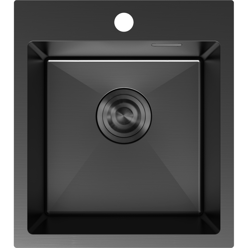 Vasken er produsert i rustfritt stål AISI 304 og har en elegant svart overflate med glatt finish. Den rektangulære kummen med rette linjer og diskret avrundede hjørner (R10) gir et moderne uttrykk som passer perfekt til en svart kjøkkenvask i stål i både klassiske og minimalistiske interiører.