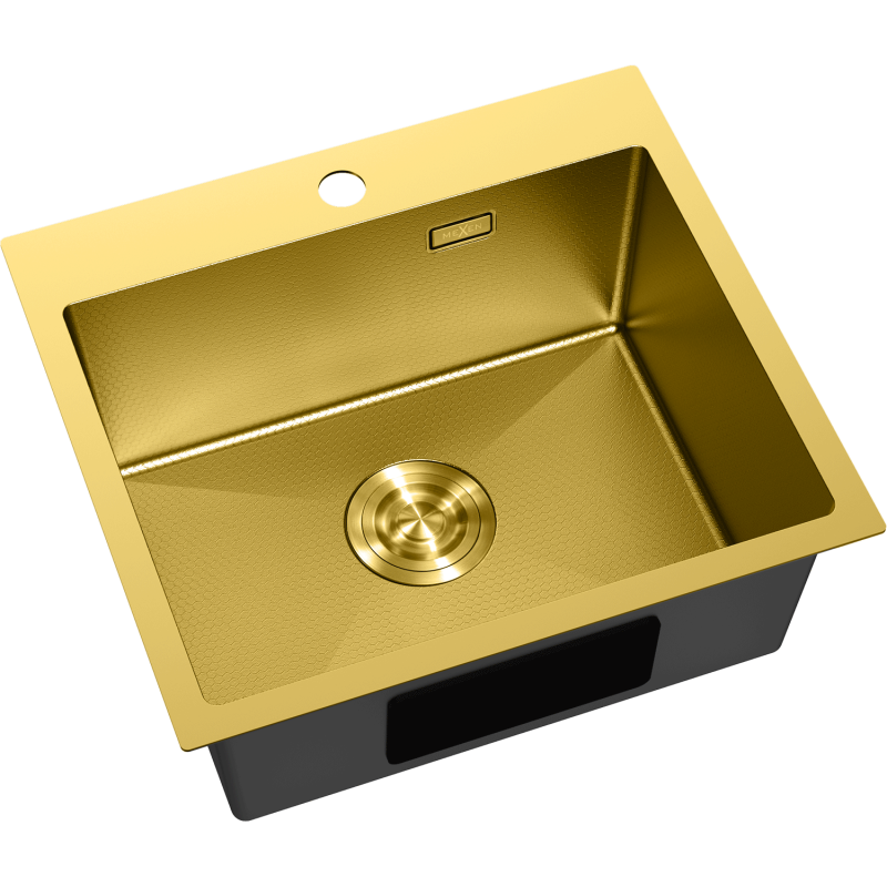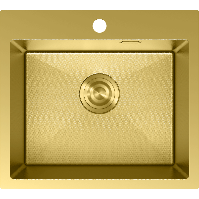 Vasken er produsert i høykvalitets rustfritt stål AISI 304, som gir svært god motstand mot korrosjon, mekaniske skader og høye temperaturer. Den karakteristiske overflaten med struktur som et bikakemønster gir et eksklusivt preg og gjør denne kjøkkenvasken i gull til et blikkfang på kjøkkenet, samtidig som den er praktisk i bruk.