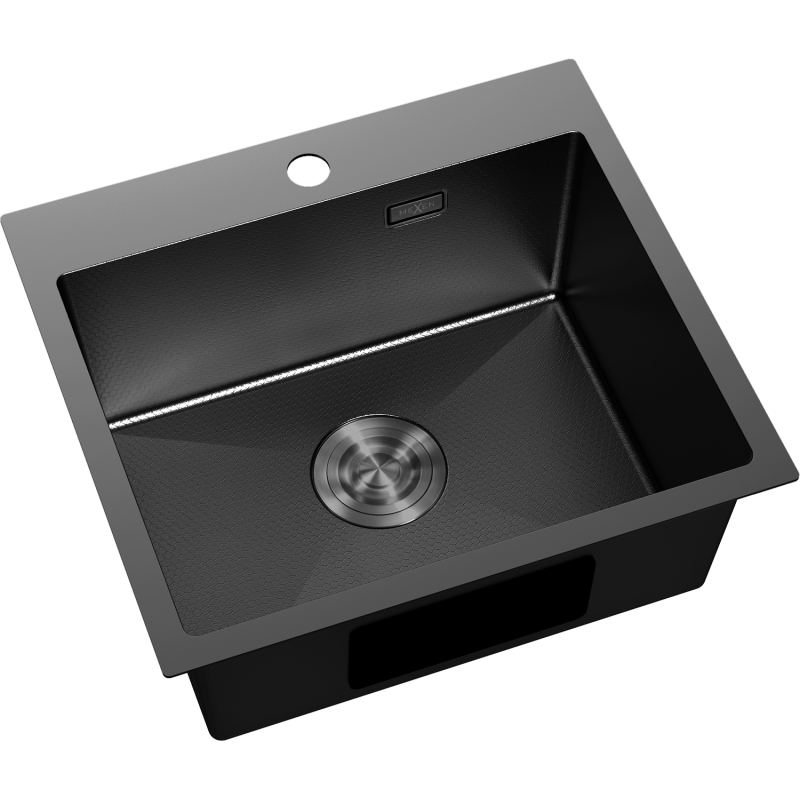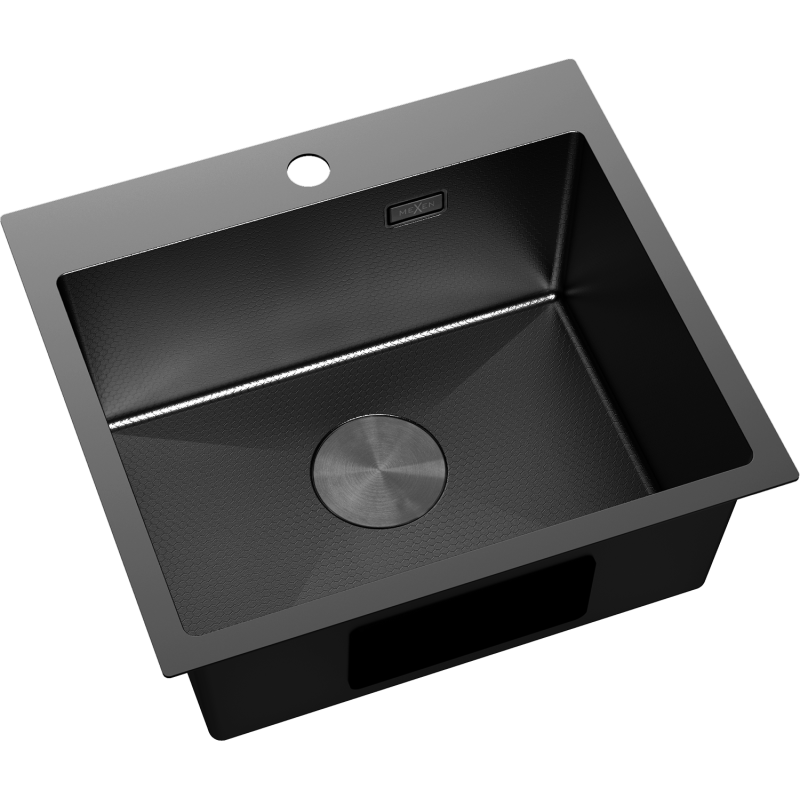 Denne kjøkkenvasken i stål fra Mexen er produsert i rustfritt stål AISI 304, kjent for sin motstand mot korrosjon, misfarging og mekanisk slitasje. Den svarte overflaten med «bikubemønster» gir et eksklusivt utseende samtidig som den bidrar til å skjule små riper og vannflekker.