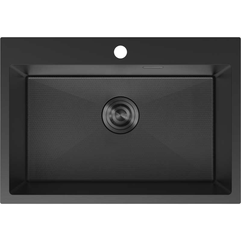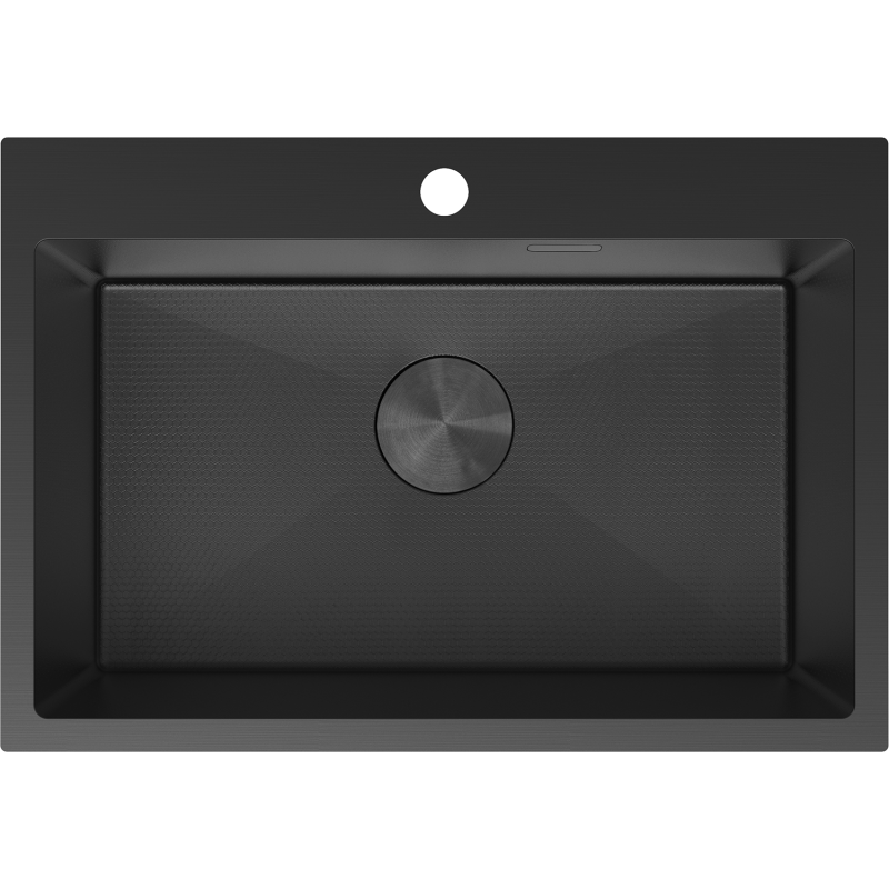 Vasken er utstyrt med en skjult overløpsåpning, hull for kjøkkenbatteri og et manuelt avløpssett med kurvventil, noe som gjør Mexen Solix-vasken både funksjonell og estetisk ren. Den svarte overflaten med strukturert bikubemønster gir bedre motstandsdyktighet mot riper og misfarging, samtidig som den understreker det moderne uttrykket til denne svarte stålvasken.