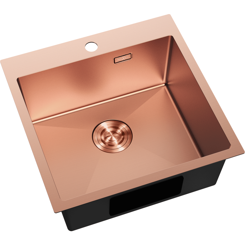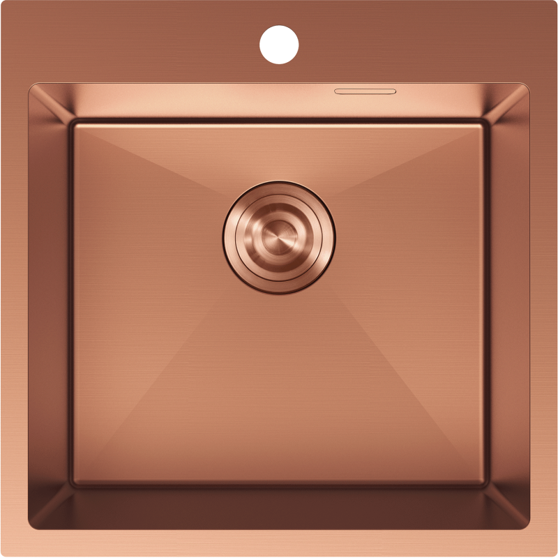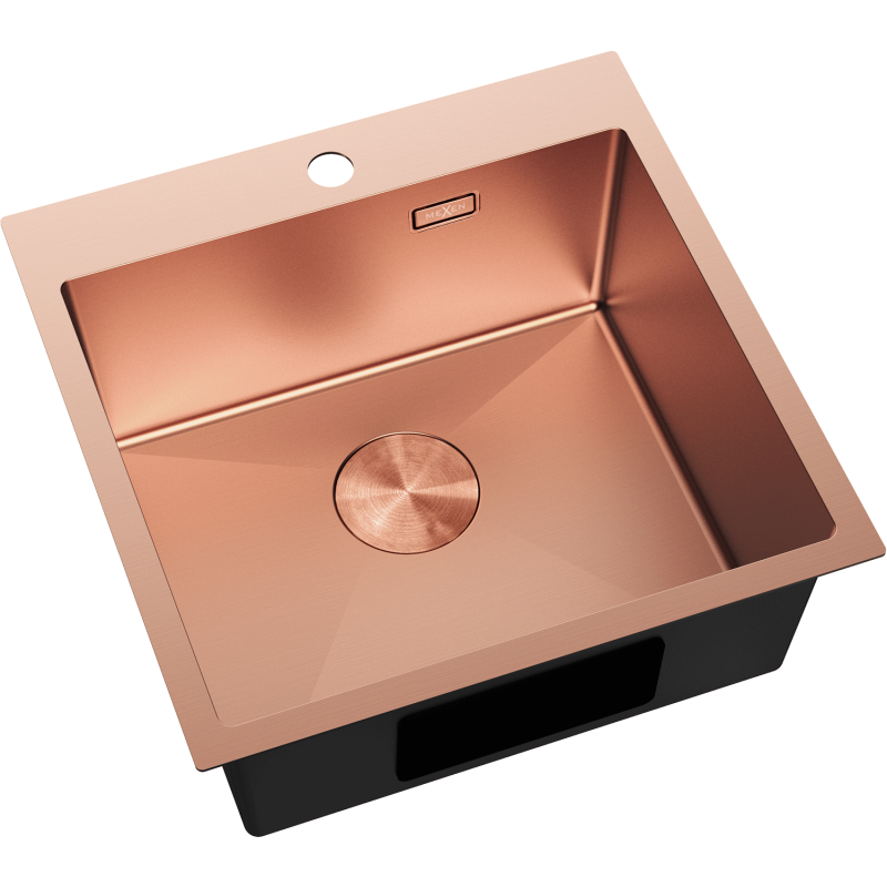 - Mexen Solix kjøkkenvask i rustfritt stål AISI 304, kobberfinish, 1 kum (500 x 500 x 200 mm)