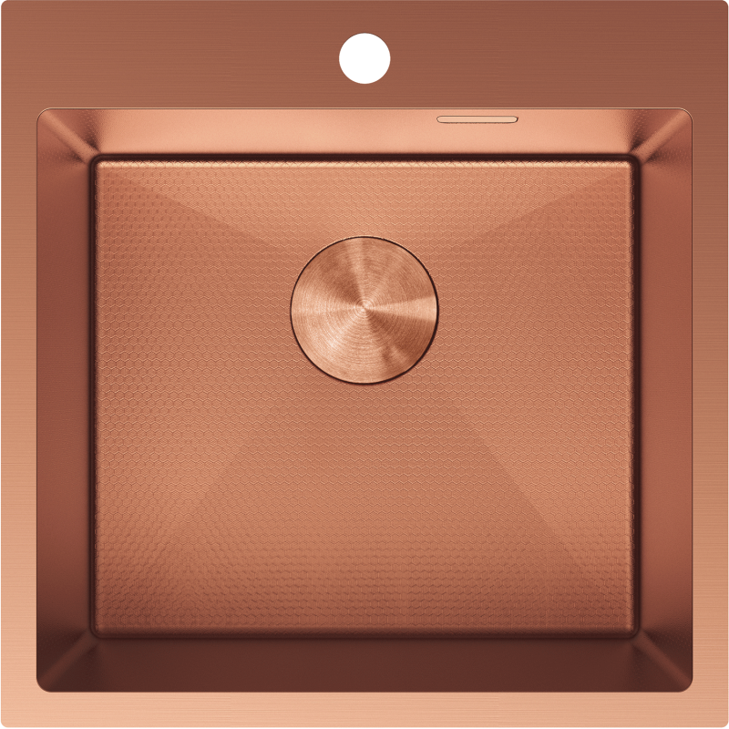 - Mexen Solix kjøkkenvask i rustfritt stål AISI 304, kobberfinish, 1 kum (500 x 500 mm)