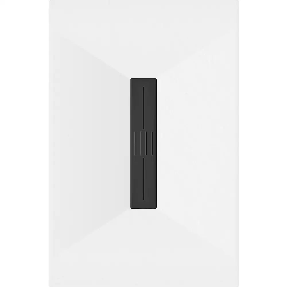Med sitt moderne rektangulære design og imponerende tynne profil, passer denne dusjbunnen perfekt inn i enhver badestil. Den hvite fargen og steinstrukturen gir et rent og luftig inntrykk, samtidig som den bidrar til å skape en følelse av større rom.