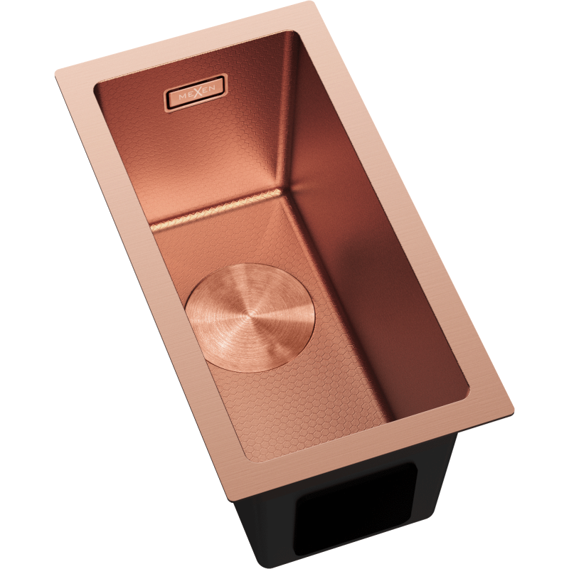 - Mexen Trixo kjøkkenvask med én kum i rustfritt stål AISI 304, kobberfarget (230 x 440 mm)