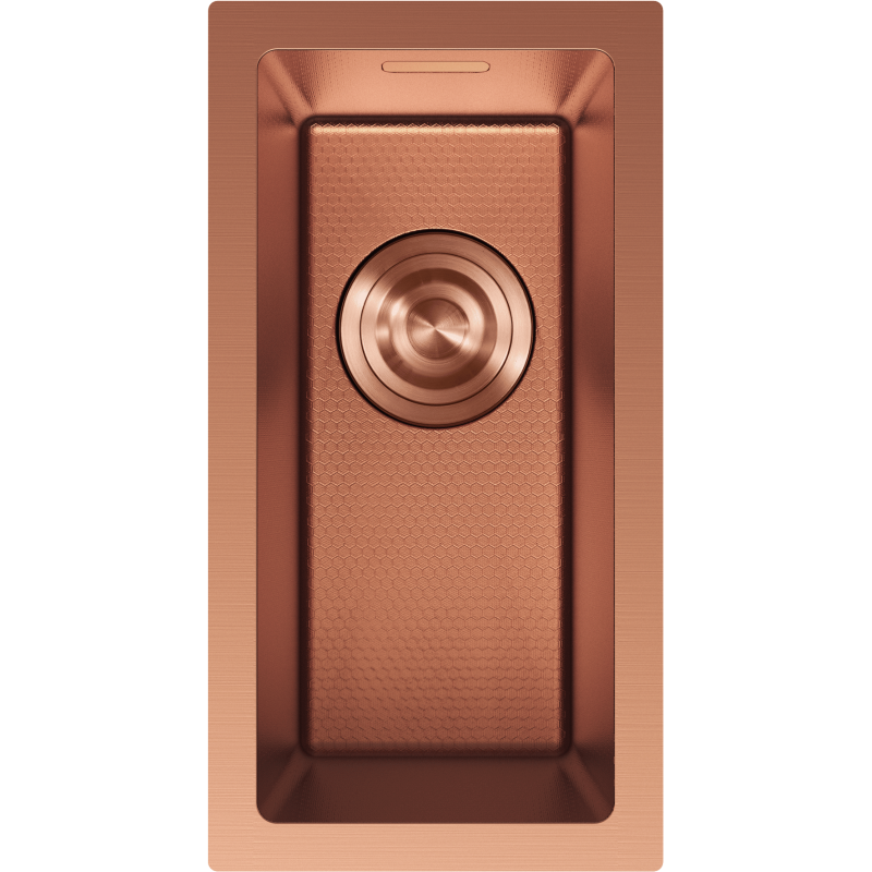 Vasken er produsert i rustfritt stål AISI 304 med en eksklusiv kobberfarget overflate. Den spesielle bikubemønsteren (honningkakestruktur) gir en dekorativ og samtidig funksjonell overflate som bidrar til å skjule små riper og merker. Som en innbyggingsvask i stål kan den monteres både nedfelt i benkeplate og som underlimt løsning, noe som gir stor fleksibilitet i kjøkkenplanleggingen.